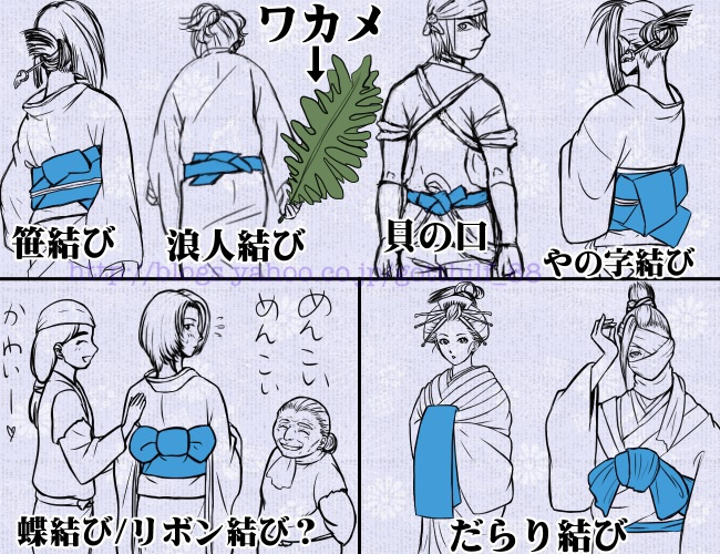 ・9人 9人 虎鉄 着物のお端折り キャラ達の帯の結び方 葵ノ朏年表