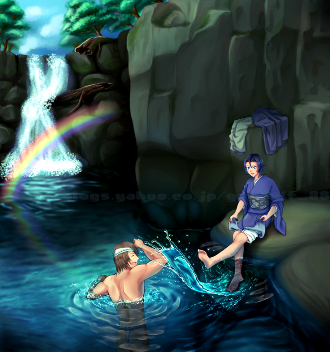 ・滝と虹と水浴び※CP気味 滝と虹と水浴び 虎鉄 滝と虹と水浴び 源ちゃん 自動着色 万次郎さん