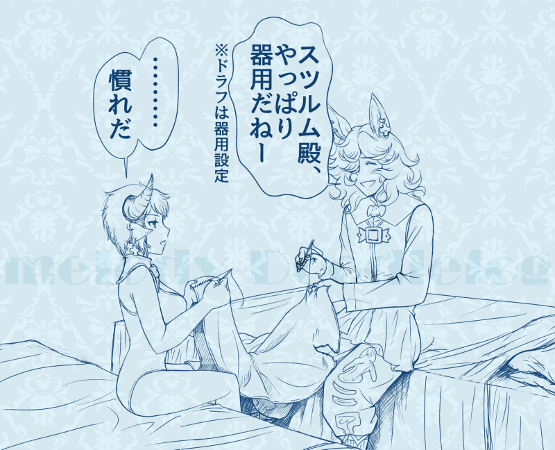3 座っているドランクと照れるスツルム ※CP
